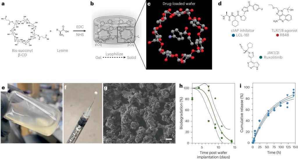 The wafer contains three drugs that are released over time to stimulate interleukin-12 production, a key immune signal that enhances anti-tumor activity. This localized delivery avoids systemic toxicity and concentrates the therapeutic effect where it is most needed. The implant is fully biodegradable and designed to dissolve after completing its drug release cycle.