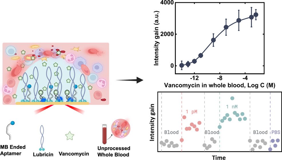 The researchers explain that the sensor’s cell‑like structure filters molecules from blood while preserving the precision of SERS. Additionally, they note that while other sensors have detected vancomycin, this platform is one hundred million times more sensitive, making it the first practical real‑time SERS sensor capable of operating in a complex fluid like blood. The advance addresses long‑standing challenges in response speed, sensitivity, and surface fouling.