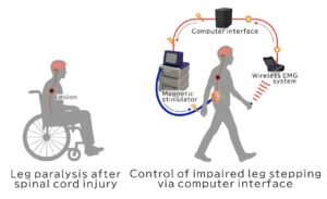 Researchers at the Tokyo Metropolitan Institute of Medical Science have shown that noninvasive spinal stimulation can help people with chronic spinal cord injury regain stepping movements. The system links signals from the hands to stimulation of the lumbar spine. When participants performed rhythmic hand grips, those signals were converted into pulses that activated spinal circuits controlling the legs. Ten individuals with paraplegia took part in the study. Over repeated sessions, they demonstrated improvements in voluntary control of stepping. The technology bypasses damaged pathways between the brain and spinal cord without requiring surgery or implants, using external magnetic stimulation instead. The…